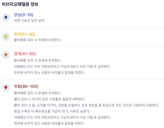 또한 정부가 제공하는 ‘비브리오 예측 시스템’을 적극적으로 활용하면 지역별 감염 가능성을 미리 확인하고, 해양 활동이나 해산물 소비를 보다 안전하게 계획할 수 있습니다. 관광지나 해수욕장 방문 전, 해당 지역의 위험도를 사전 확인하는 습관만으로도 많은 위험을 줄일 수 있습니다.