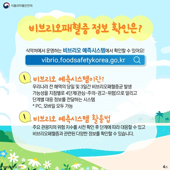 또한 식중독 예방 정보와 오염 지역 해산물 회수 조치 등에 대한 정보도 함께 제공하므로 여름철 식생활 위생을 위한 유용한 도구입니다.