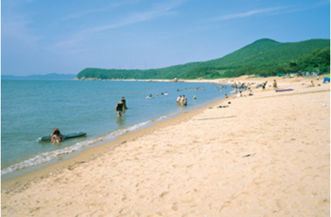 밀물 때는 바닷물이 해변을 채우며 해수욕을 즐길 수 있고, 썰물 때는 수평선 너머까지 이어지는 갯벌이 드러나 각종 해양 생물을 관찰할 수 있는 갯벌 체험장이 됩니다. 칠게, 가무락, 쌀무늬고둥, 갯지렁이 등 아이들이 직접 눈으로 보고 손으로 만질 수 있어 가족 단위의 여름휴양지로 특히 인기가 많습니다.