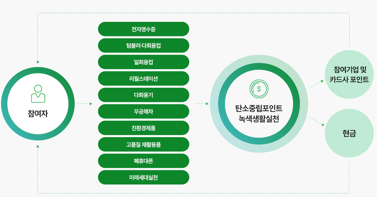 친환경제품 구매: 그린카드로 친환경제품을 구매하거나, 결제수단에 상관없이 참여 매장에서 친환경제품을 구매하면 포인트가 지급됩니다.