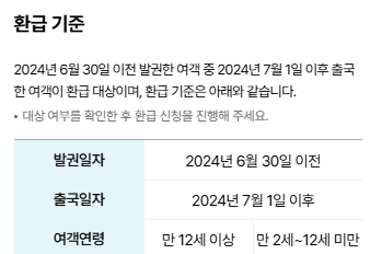 이에 따라 2024년 6월 30일 이전에 항공권을 발권하고 7월 1일 이후 출국한 여객은 과납금을 환급받을 수 있습니다. 성인은 3,000원, 어린이(만 2세 이상~12세 미만)는 최대 10,000원의 환급이 가능합니다.