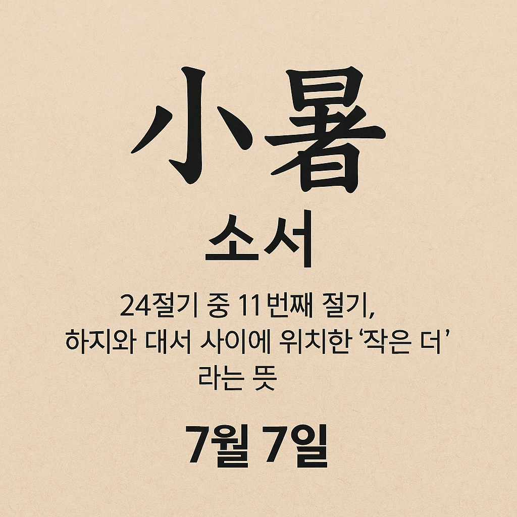 ‘소서(小暑)’는 한자 그대로 “작은 더위”를 의미하며, 절기상으로는 하지와 대서 사이(매년 7월 7~8일)에 해당합니다.