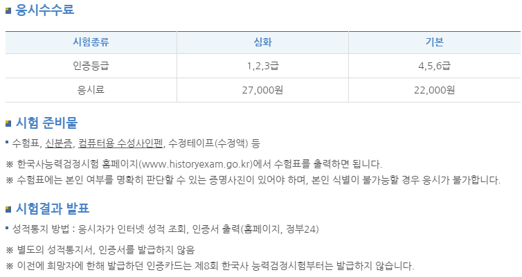 한능검은 현재 연 6회 정기시험이 있으며, 응시료는 일반형 기준 약 2만 원 수준입니다. 기존 한국사 공부에 자신이 있거나 시험이 가까운 수험생이라면, 미리 3급 이상을 확보해두는 것이 전략적으로 유리합니다.