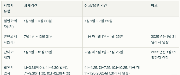 2025 부가세 신고기간