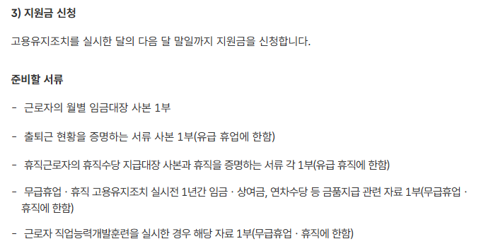 고용유지지원금을 신청하려면 다음과 같은 자격조건을 충족해야 합니다.