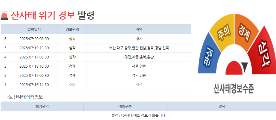 해마다 반복되는 여름철 집중호우와 태풍은 우리 생활에 큰 영향을 미치고 있습니다. 특히 산과 가까운 지역이나 계곡 주변에서는 갑작스러운 산사태가 큰 재난으로 이어질 수 있어 각별한 주의가 필요합니다. 산사태는 예고 없이 발생하는 만큼, 평소 철저한 대비와 정확한 정보를 알고 있는 것이 중요합니다.