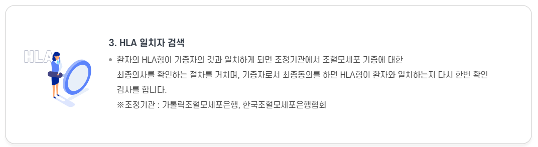 환자와 HLA가 일치하는 경우 연락을 받게 되며, 추가 검사 후 기증이 진행됩니다.