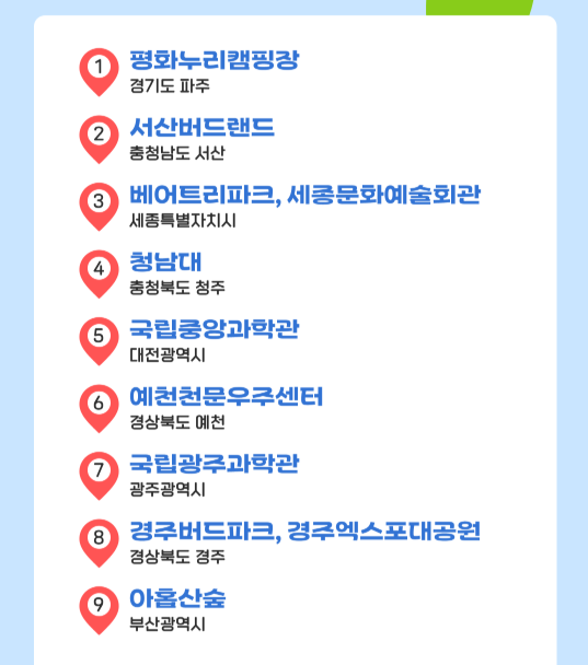 문화생활: 국립공원 입장료, 영화관, 아이스링크, 박물관 등